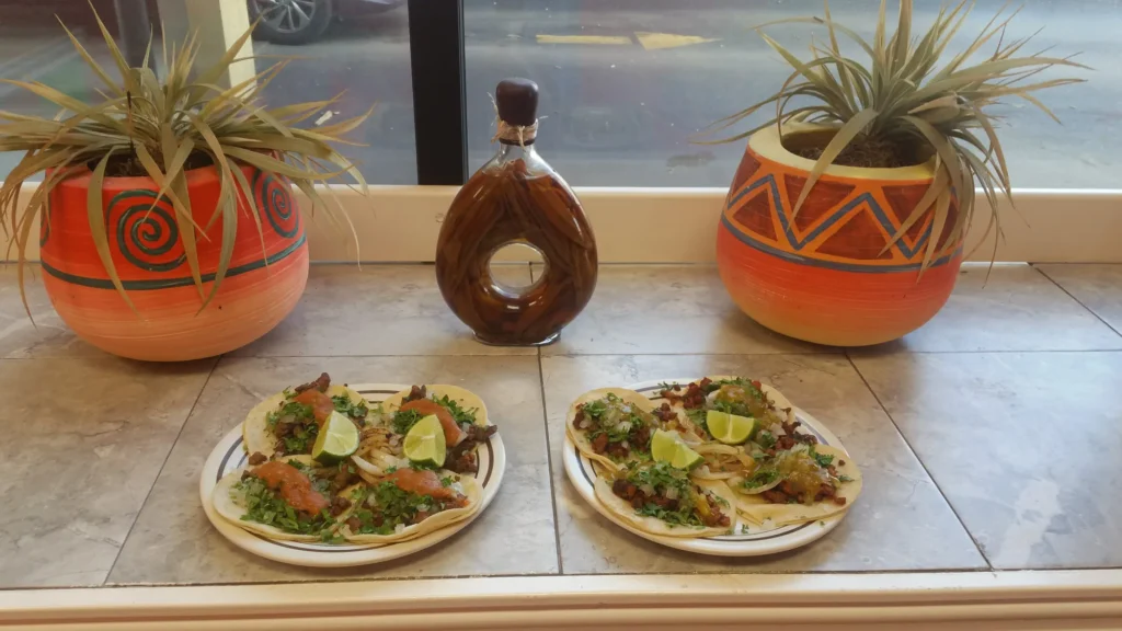Grocery store and restaurant offering meat products, homemade tortilla chips, and Mexican eats like tacos
