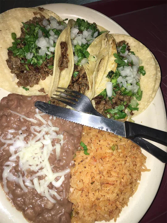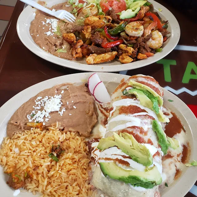 Traditional Mexican cuisine such as tacos and burritos served in a casual setting.