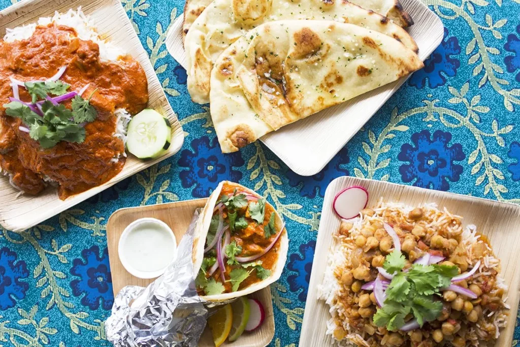 Modern option for Indian dishes served in a sunny space with large windows & ornate...